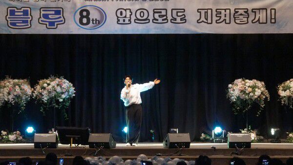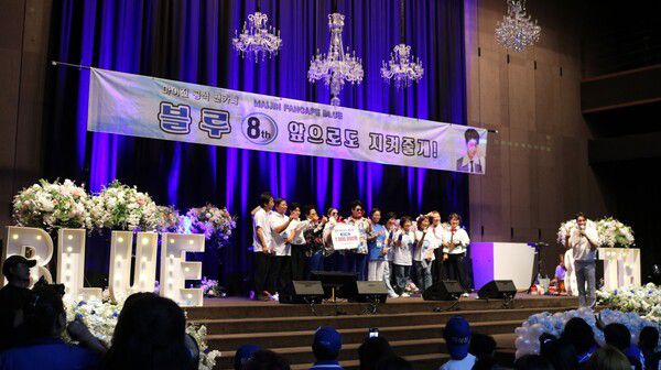 지난 12일 대전 션샤인 호텔 그랜드 볼룸에서 마이진 팬카페 ‘블루’의 8주년 생일잔치가 열렸다. 이날 오후 5시부터 시작해 4시간여 동안 마이진의 축하공연, 포토타임, 팬클럽 회원 장기자랑 ‘블루가왕 선발전’ 등 다양한 행사가 펼쳐졌다.