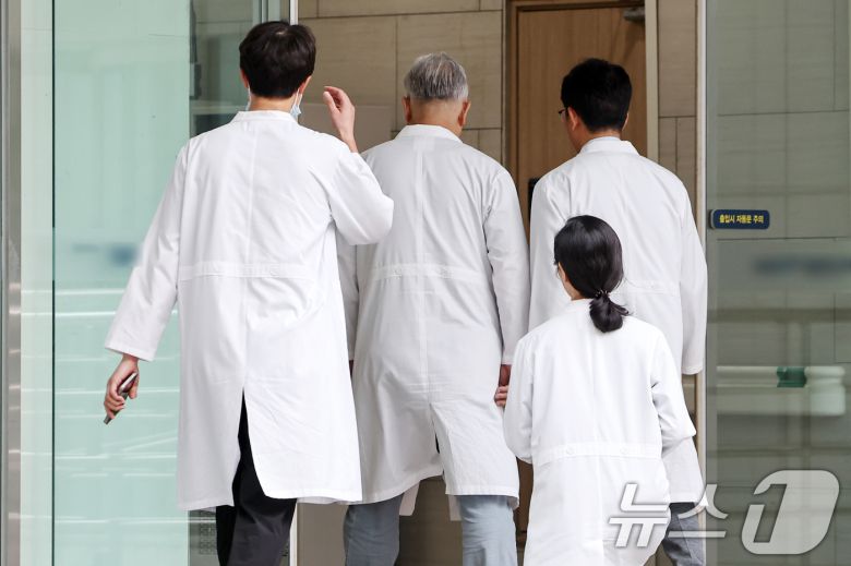 (서울=뉴스1) 민경석 기자 = 1년 반 가까이 학교를 떠났던 전국 의과대학 학생들이 전원 복귀를 선언하면서 전공의 복귀 시점에 관심이 쏠리고 있다. 대한전공의협의회(대전협)는 14일 국회 보건복지위원장인 박주민 더불어민주당 의원 등을 만나 해법을 논의할 계획이다. 이날 서울의 한 대학병원에서 의료진이 오가고 있다. 2025.7.14/뉴스1