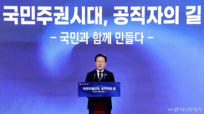 [진천=뉴시스] 최동준 기자 = 이재명 대통령이 14일 충북 진천 국가공무원인재개발원에서 5급 신임관리자과정 교육생에게 특강을 하고 있다. (대통령실통신사진기자단) 2025.07.14. photocdj@newsis.com /사진=최동준 |