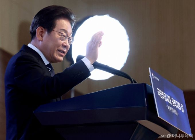[진천=뉴시스] 최동준 기자 = 이재명 대통령이 14일 충북 진천 국가공무원인재개발원에서 5급 신임관리자과정 교육생에게 특강을 하고 있다. (대통령실통신사진기자단) 2025.07.14. photocdj@newsis.com /사진=최동준