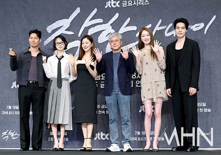 (MHN 이지숙 기자) 배우 박훈, 류혜영, 오나라, 송해성 감독, 이성경, 이동욱이 14일 오후 서울 영등포구 더링크 호텔에서 열린 JTBC 새 금요시리즈 '착한 사나이' 제작발표회에 참석했다.