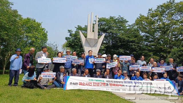 이 단체는 "지난 2024년 3월 윤석열 정부 체제에서 2기 여수·순천10·19위원회(여순사건위원회)가 출범했다"며 "2기 위원회는 윤석열 정부에서 유족 대표를 제외한 민간인 위촉직에 여순사건 전문가는 단 한 명도 없이 뉴라이트 계열 인사들로 채웠다"고 주장했다.