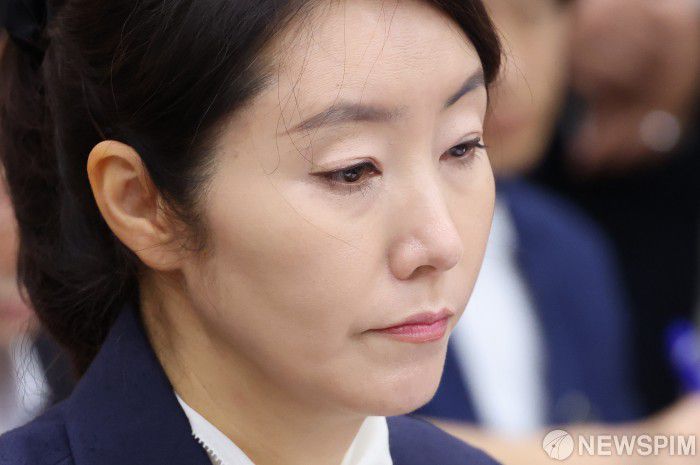 [서울=뉴스핌] 정일구 기자 = 강선우 여성가족부 장관 후보자가 14일 오전 서울 여의도 국회 여성가족위원회에서 열린 인사청문회에서 생각에 잠겨 있다. 2025.07.14 mironj19@newspim.com