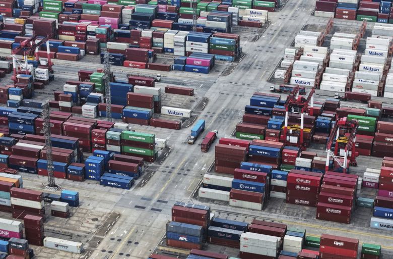 중국 상하이항에 수출용 컨테이너들이 놓여 있다. 2025년 6월 9일 촬영. / AP연합뉴스 |