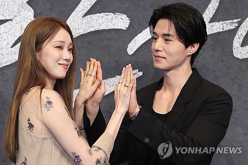 (서울=연합뉴스) 강민지 기자 = 배우 이성경(왼쪽), 이동욱이 14일 서울 구로구 더링크 호텔에서 열린 JTBC 새 금요시리즈 '착한 사나이' 제작발표회에서 포즈를 취하고 있다. 2025.7.14 mjkang@yna.co.kr