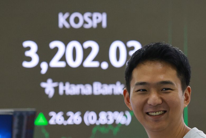 한국거래소 시세를 보면 이날 코스피는 26.26(0.83%) 오른 3202.03에 거래를 마쳤다. 코스피 종가가 3200을 웃돈 것은 2021년 9월6일(3203.33) 이후 3년10개월 만이다.