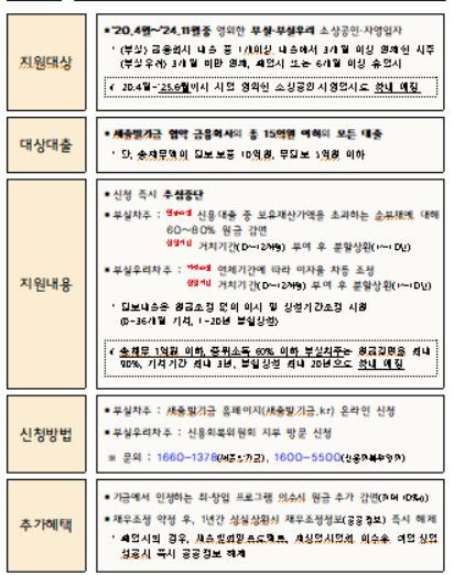 부실우려차주는 연체기간에 따라 이자율을 차등 조정한다. 거치기간은 최대 1년이며, 분할상환 기간은 최대 10년이다.
