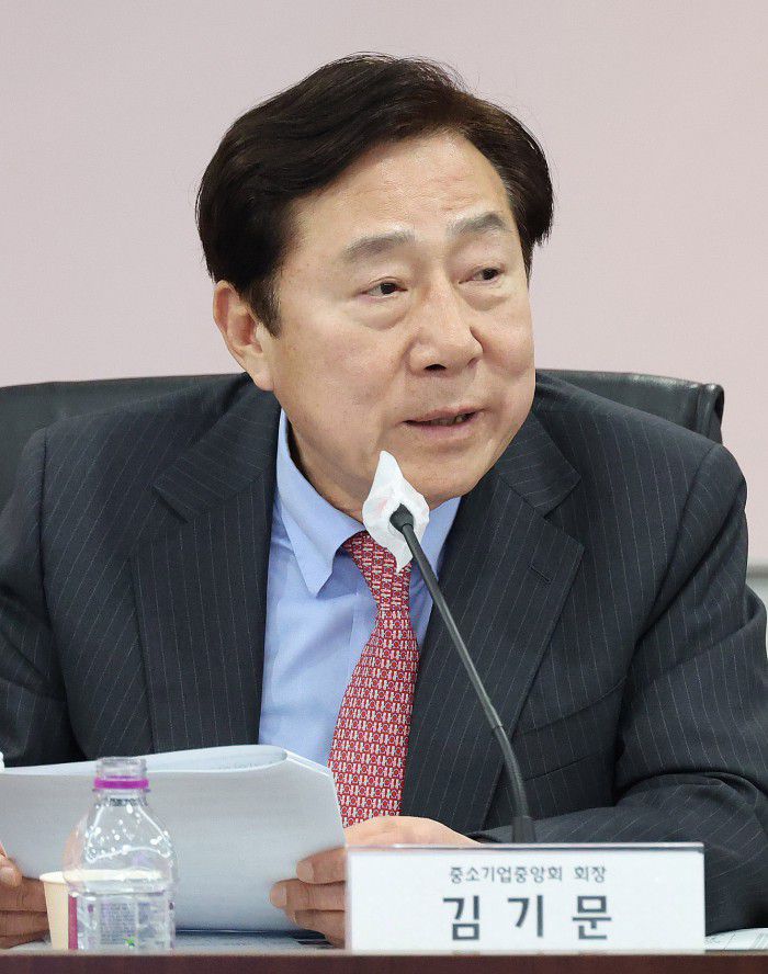 [서울=뉴스핌] 이호형 기자 = 김기문 중소기업중앙회장이 28일 오전 서울 여의도 중소기업중앙회에서 열린 홍준표 국민의힘 대선 예비후보와 간담회에서 발언을 하고 있다. 2025.04.28 leemario@newspim.com |