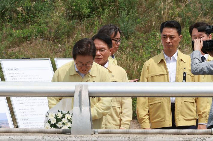 이재명 대통령이 취임 이후 첫 충북 방문 일정으로 오송 지하차도 참사 현장을 찾았다.