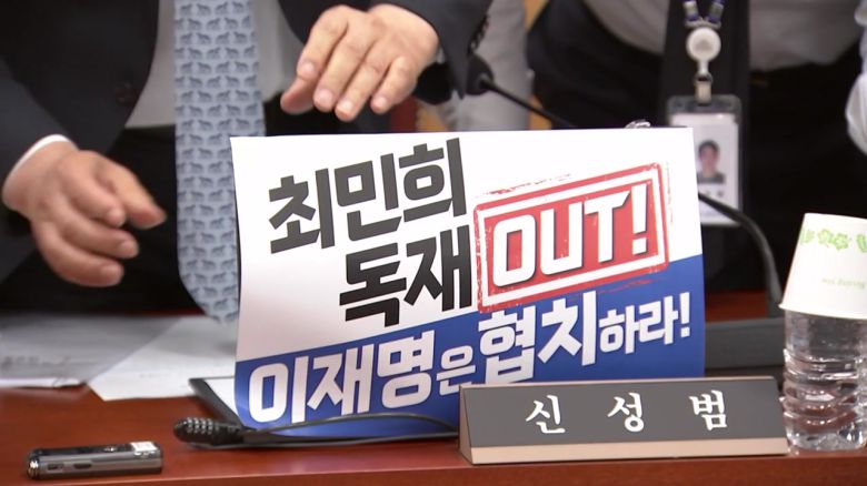 배경훈 과기부 장관 후보자 인사청문회, 국민의힘 의원들이 노트북에 붙인 '최민희 독재 아웃' 피켓을 두고 초반부터 날 선 발언이 오갔습니다.