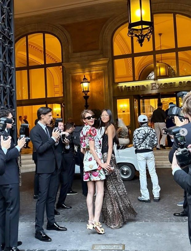 해당 사진에는 호텔 앞에서 포즈를 취한 야노 시호와 추사랑, 그리고 다수의 포토그래퍼가 둘러싼 장면이 담겼다. 영화제 레드카펫을 방불케 하는 분위기다.