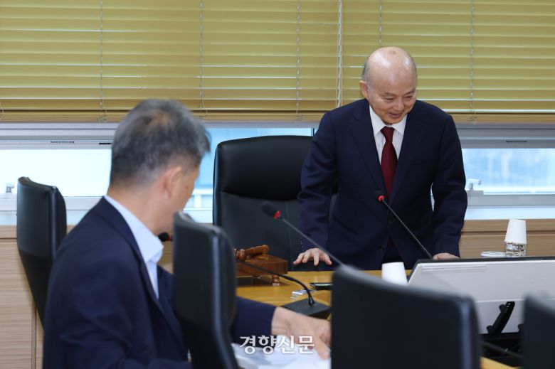 국가인권위원회 상임위원회가 열린 지난달 26일 서울 중구 인권위에 안창호 인권위원장이 자리에 앉고 있다. 정효진 기자