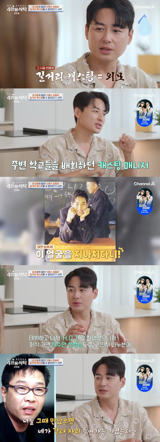 그러면서 "우리 학교 주변에 SM엔터테인먼트가 있었다. 거기서 캐스팅 매니저들이 학교 주변을 계속 돌아다녔다. 교문 앞에 가서 '이 학교에서 누가 제일 유명하니? 이름 좀 알려줘' 그렇게 해서 강타 씨, 문희준 씨, 전진 씨 다 그렇게 캐스팅 된 분들이다"라고 이야기했다.