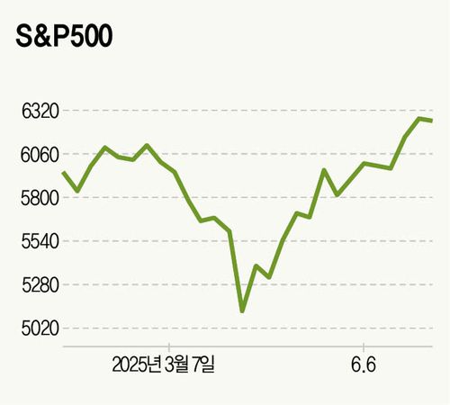 관세 전쟁 개전 직후인 지난 4월 3~4일(현지 시간) 이틀 동안 미 주식 시장 시가총액은 6조6000억달러(약 9600조원) 줄었다. 한국 주식 시장 시가총액(2372조원) 네 배 정도 돈이 한순간 증발했다. 뉴욕 증시 3대 지수는 이틀간 10%가량 빠졌다. 특히 S&P500의 4일 하루 낙폭(-6%)은 2000년 4월 닷컴 붕괴 때(-5.8%)나 2001년 9·11 테러 당일(-4.9%)보다 컸다. 다른 나라에 앞서 자국 증시부터 초토화시킨 셈이었다. 이때만 해도 미국 증시는 회복하는 데 상당한 시간이 걸릴 듯 보였다. 주요 투자 기관은 미 증시 전망치를 잇달아 하향 조정했다.