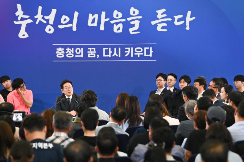 이재명 대통령이 지난 4일 대전컨벤션센터에서 타운홀 미팅 형식으로 열린 '국민소통 행보 2탄, 충청의 마음을 듣다'에서 발언하고 있다./뉴스1 |