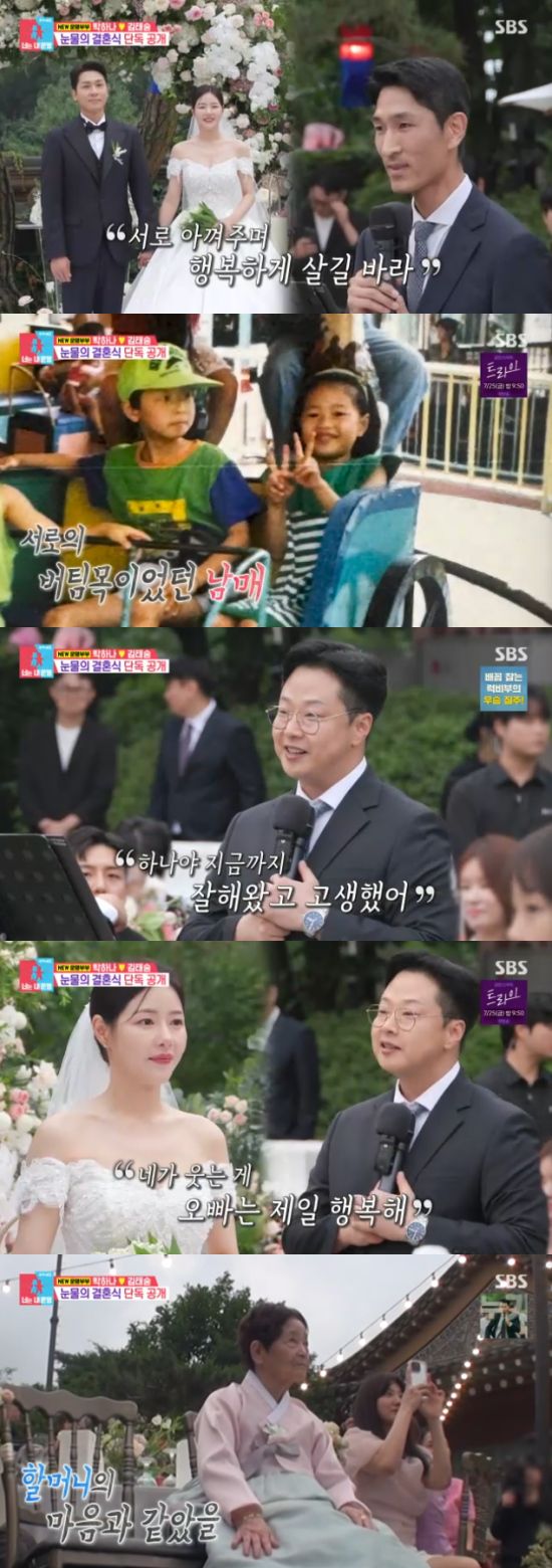 여기저기서 눈물샘이 터졌고, 박하나 역시 "할머니가 잘 걸으셨다. 정말 완벽한 드라마 같았다"면서 다시 한번 뭉클해했다. 이어 축가로 노을의 '청혼'을 불러 결혼식장 분위기를 더욱 달달하고 감미롭게 만들었다. 그리고 김태술의 친형, 박하나의 친오빠의 축사도 이어졌다.