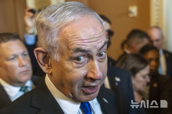 [워싱턴=AP/뉴시스] 베냐민 네타냐후 이스라엘 총리가 지난 9일(현지 시간) 미 워싱턴의 연방의회 의사당에서 의원들과의 회동에 앞서 기자들에게 발언하고 있다. 2025.07.15. |