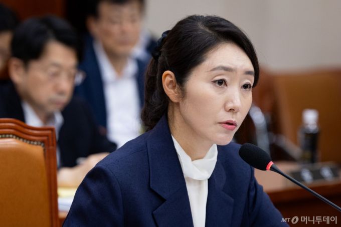 강선우 여성가족부 장관 후보자가 14일 서울 여의도 국회에서 열린 인사청문회에 출석해 의원 질의에 답하고 있다. 2025.7.14/뉴스1  Copyright (C) 뉴스1. All rights reserved. 무단 전재 및 재배포,  AI학습 이용 금지.