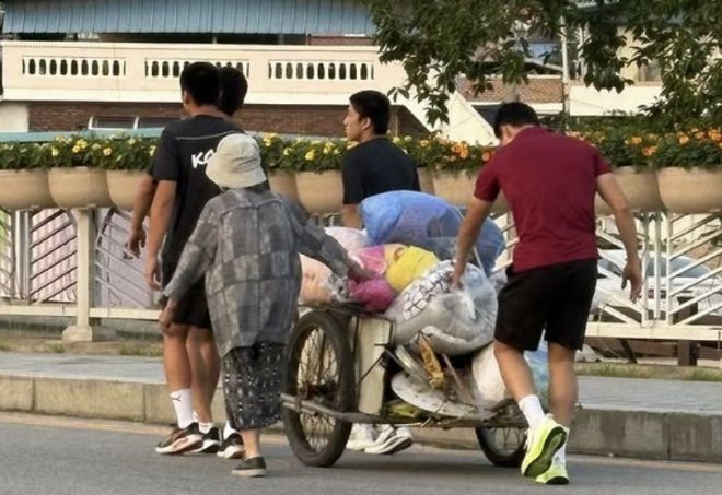 이 제보자는 “가족과 모전천에서 산책하고 있었는데 한 할머니께서 혼자 리어카를 끌고 계시는 모습을 봤다”며 “그 순간 머리가 짧고 군인(ROKA) 티셔츠를 입은 젊은 남자 여럿이 뛰어와 할머니를 부축하고 리어카를 끌어주는 모습을 보았다”고 했다.