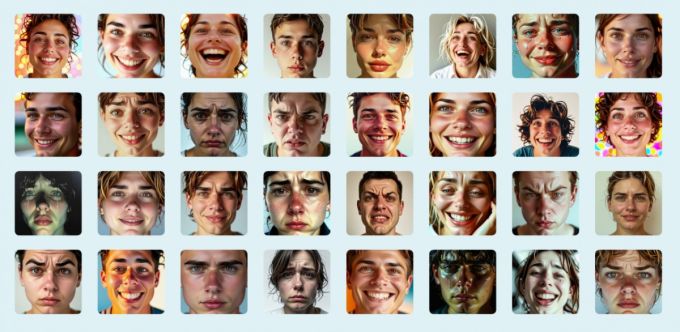 방송통신위원회·한국지능정보사회진흥원(NIA)이 진행하는 중학생 대상 디지털 윤리교육 시간에 활용된 32장의 얼굴 사진. 학생들은 이 사진들 중 '행복한 표정'과 '행복하지 않은 표정'을 분류하고 이 결과가 AI(인공지능)의 판단과 어떻게 같고 다른지, 왜 그런지를 배웠다. / 자료=방통위, NIA