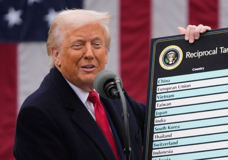 도널드 트럼프 미국 대통령이 올 4월 2일(현지 시간) 워싱턴 백악관 내 로즈가든에서 국가별 상호관세를 발표하고 있다. 12일 트럼프 대통령은 유럽연합(EU)과 멕시코에 대해 4월 발표보다 각각 10%포인트, 5%포인트 오른 30%의 상호관세율을 다음 달 1일부터 적용하겠다고 밝혔다. 워싱턴=AP 뉴시스