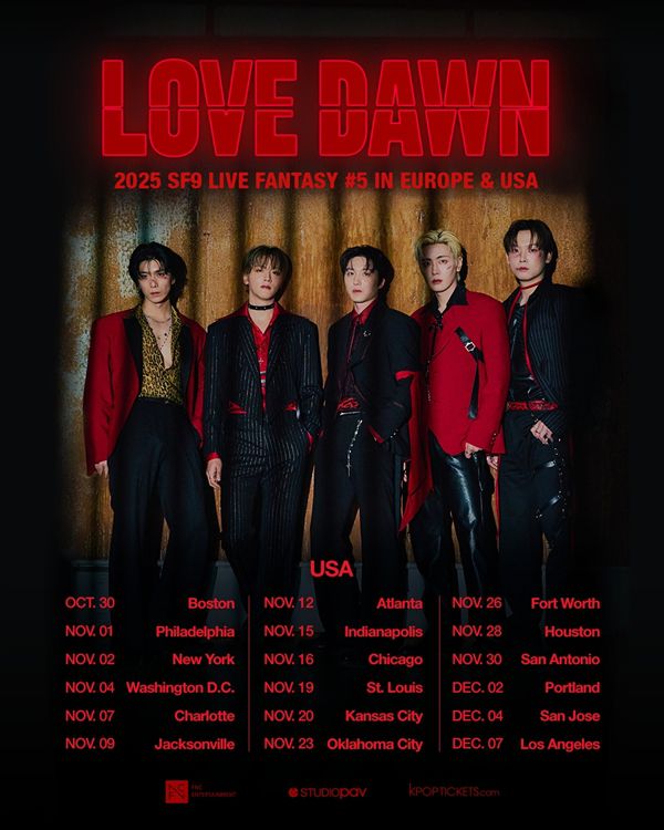 한편 SF9의 'LOVE DAWN' 티켓은 8월 1일부터 케이팝티켓(KPOPTICKETS.com)을 통해 예매할 수 있으며, 투어에 관한 자세한 정보는 FNC엔터테인먼트 공식 홈페이지와 SNS에서 확인할 수 있다.