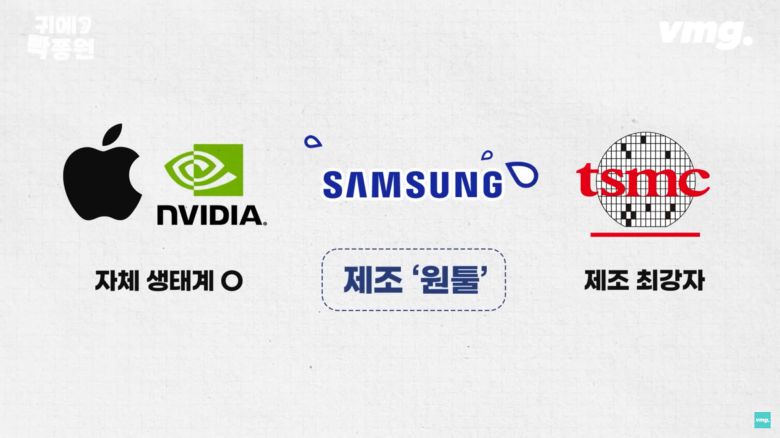 이것보다 더 큰 것은, 삼성은 소프트웨어 파워가 없습니다. 삼성 생태계가 없잖아요. 설계만 하고 있는 라이벌로 불리는 애플, 퀄컴, 엔비디아는 칩을 설계해서 이걸 파는 데서 나오는 이윤도 있지만, 이 외에도 소프트웨어 파워를 바탕으로 자사 생태계를 갖추고 있고 이를 통한 고부가가치 산업에서도 돈을 굉장히 많이 벌고 있어요.