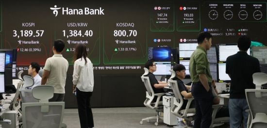 3년 10개월만에 최고치를 찍은 코스피가 하루만에 숨고르기에 들어간 15일 서울 중구 하나은행 딜링룸 모니터에 코스피를 비롯해 원/환율, 코스닥 지수가 표시돼 있다. 이날 코스피 지수는 전 거래일보다 9.18포인트(-0.29%) 내린 3,192.85로 장을 시작해 약보합세를 이어가고 있다. <ⓒ투자가를 위한 경제콘텐츠 플랫폼, 아시아경제(www.asiae.co.kr) 무단전재 배포금지>이 기사의 카테고리는 언론사의 분류를 따릅니다.0공유하기