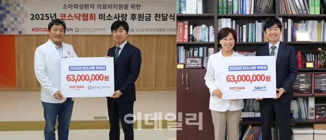 ‘미소사랑 후원금’은 코스닥협회가 매년 코스닥기업들의 정성을 모아 추진해 온 사회공헌사업으로, 치료비 마련이 어려운 소외계층 아동에게 경제적인 도움을 제공하고, 코스닥기업의 사회적 책임을 실천하기 위한 취지에서 마련됐다.