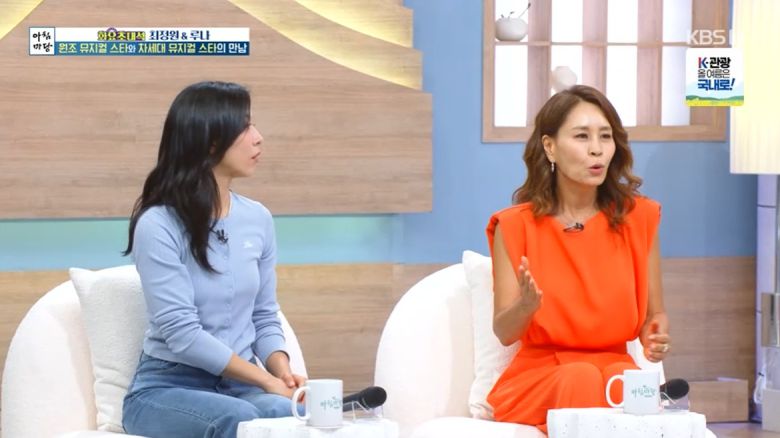 15일 KBS 1TV '아침마당'의 '화요초대석'에는 뮤지컬 '맘마미아'의 주역 배우 최정원과 에프엑스 루나가 게스트로 출연했다. 최정원과 루나는 '맘마미아'에서 각각 도나, 소피 역을 맡았다.