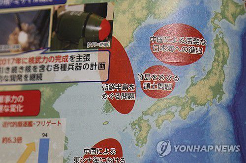 올해 방위백서에도 '일본 고유의 영토인 북방영토, 다케시마(독도)의 영토문제가 여전히 미해결인 채 존재한다'는 문구가 실렸으며 '일본 주변 안전보장환경' 지도엔 '다케시마(독도)를 둘러싼 영토문제'라고 표시됐습니다.