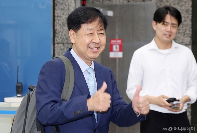 (서울=뉴스1) 김진환 기자 = 구윤철 경제부총리 겸 기획재정부 장관 후보자가?30일 오전 서울 중구 청계천로 예금보험공사에 마련된 인사청문회 준비 사무실로 출근하며 취재진을 향해 엄지를 치켜들고 있다. 2025.6.30/뉴스1 Copyright (C) 뉴스1. All rights reserved. 무단 전재 및 재배포, AI학습 이용 금지. /사진=(서울=뉴스1) 김진환 기자 |