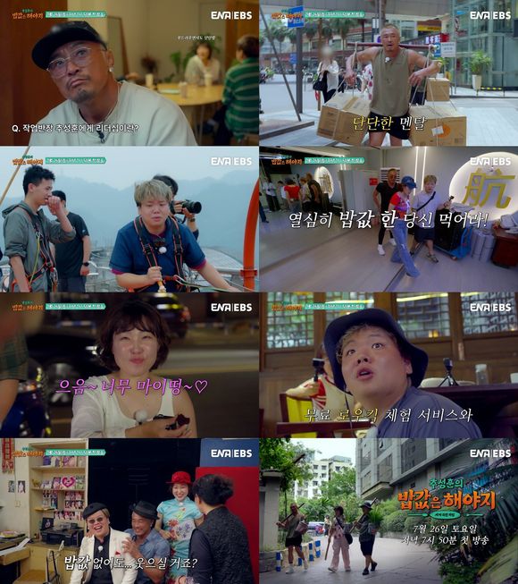ENA·EBS 새 예능 프로그램 '추성훈의 밥값은 해야지' 제작진은 15일 메인 예고 영상을 공개했다. 영상에는 고층 건물 위에서 일하고 있는 추성훈 이은지 곽준빈의 모습이 담겼다.