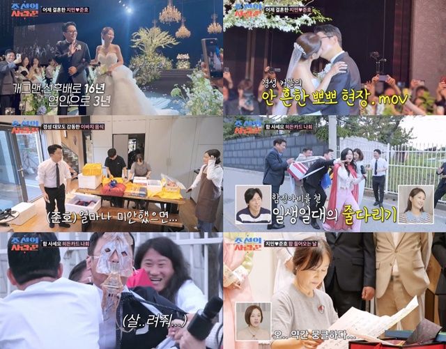 [스타데일리뉴스=서태양기자] TV CHOSUN 예능프로그램 '조선의 사랑꾼'에서는 개그맨 부부 김준호♥김지민의 전통 혼례 풍경이 공개되며 시청자들에게 유쾌한 감동을 전했다.