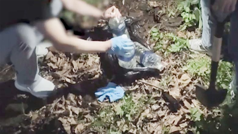 흙을 파내자 검은 비닐봉지가 나옵니다.