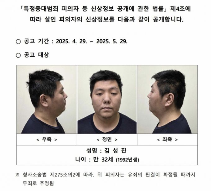 4월29일 서울경찰청은 김성진(32)의 신상을 공개했다./사진=서울경찰청 홈페이지 갈무리 |