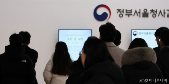 [서울=뉴시스] 김명원 기자 = 올해 국가공무원 9급 공채 선발시험 응시 원서를 접수한 결과 선발 예정 인원 4330명에 총 10만5111명이 지원해 평균 경쟁률 24.3대 1을 보이며 9년만에 반등했다. 정부는 저연차 공무원들의 공직 이탈 가속화를 막기 위해 8년 만에 공무원 보수를 최대치(3%)로 인상하는 등 대대적인 처우 개선에 나서고 있다. 사진은 10일 서울 종로구 정부서울청사에서 공무원들이 점심 식사를 위해 청사를 나서고 있는 모습. 2025.02.10. kmx1105@newsis.com /사진=김명원 |