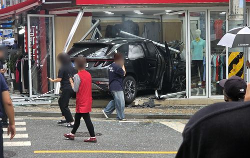 A씨 차량은 1층 의류매장의 유리창을 깨고 들어가 내부 집기들을 부순 뒤 멈춰 섰다.