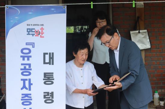 광주지방보훈청은 지난 14일 6·25 참전유공자로 등록된 고 최오권씨의 유가족을 방문해 새 정부 '대통령 명의 유공자 증서'를 전달했다고 15일 밝혔다.