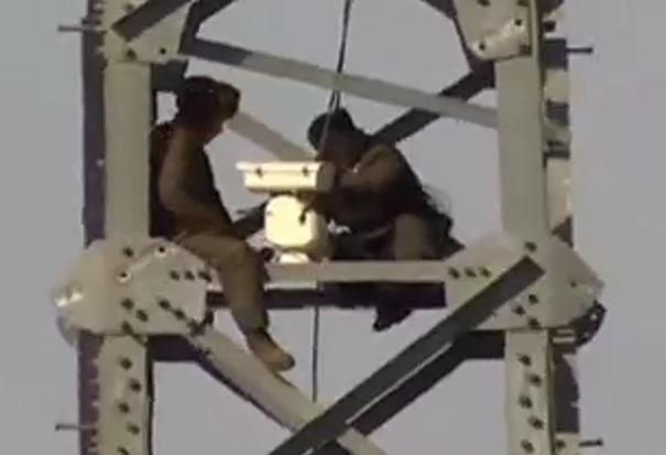 북한군이 2월 초 군사분계선(MDL)에서 가장 가까운 북측 경의선 송전탑(34번)에 감시 카메라를 설치하는 모습의 참고 사진. 합동참모본부 제공 |