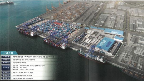 BNOT는 부산항 신항 남컨 서측 부지 36만㎡에 약 8000억 원을 투자해 2000TEU급 피더부두 2선석과 3만DWT급 잡화부두 1선석을 조성·운영하는 내용의 제안서를 제출했다. 해양수산부와 협업해 제안서를 보완한 후 한국개발연구원(KDI)의 적격성 검토 절차를 거친다.