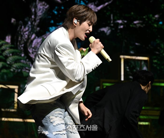 온유는 15일 오후 3시 서울 영등포구 명화 라이브홀에서 열린 정규 2집 ‘퍼센트(PERCENT)’ 발매 기념 쇼케이스에서 “우리가 저마다 다른 환경과 시간 속에서 많은 순간 생각을 한다. 그 모든 것들이 나를 만든다는 생각으로 이번 앨범을 만들었다”고 말했다.