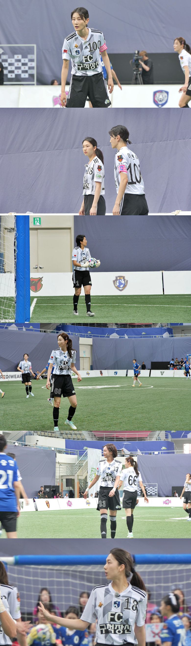 한편, 이날 'FC구척장신'의 대기실에는 반가운 얼굴이 등장해 눈길을 끌었다. 그 주인공은 바로 과거 팀의 수비수로 활약했던 송해나. 부상 회복 후 취미로 축구를 하는 그녀는 "한 명 빠지면 바로 들어오니 조심해"라는 농담 섞인 응원으로 팀 분위기를 유쾌하게 풀어주었다. 원년 멤버 송해나의 깜짝 응원에 힘입은 구척장신이 승리를 거머쥘 수 있을지 관심이 쏠린다.