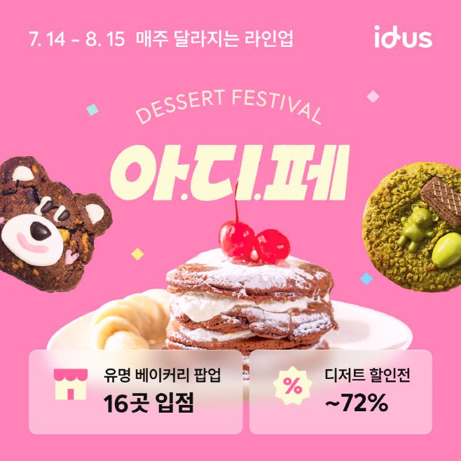 아이디어스는 이번 온라인 팝업 개최를 기념해 다채로운 할인 혜택도 마련했다. △첫 구매 고객 대상 2000원, d+ 멤버십 회원 전용 할인 쿠폰 제공 △최대 72% 디저트 할인전 △매일 낮 12시 선착순 혜택 △인기 디저트 증정 '기념일 등록 이벤트' 등이 진행된다.