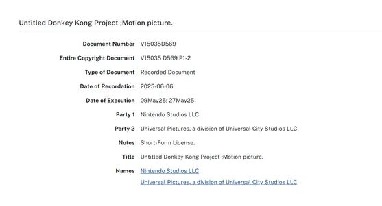 최근 닌텐도 스튜디오와 유니버셜 픽처스가 미국 저작권 사무소에 동키콩을 등록한 게 뒤늦게 알려졌다. 영화 제목은 아직 정해지지 않았다.