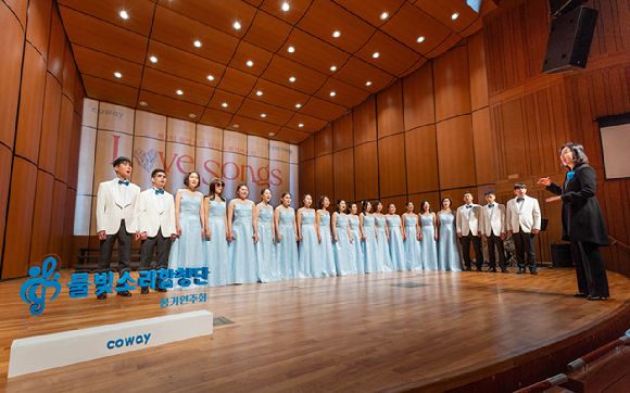 코웨이 물빛소리 합창단 단원들이 공연을 펼치고 있다. [사진=코웨이] |