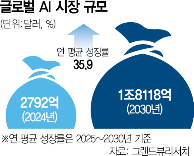 15일 정보기술(IT) 업계에 따르면 NIA는 ‘AI 전환에 따른 디지털 정부 추진전략 개발’ 연구용역을 이달 14일 긴급공고로 발주했다. NIA는 추진배경으로 “정부가 최근 AX 속도를 따라가지 못하고 있다”며 “기존의 전자정부 패러다임을 고수할 경우 실질적 성과를 창출하지 못하는 문제가 발생할 수 있어 AX에 선제적으로 대응하기 위함”이라고 설명했다. 이에 따라 NIA는 AI 정부로 나아가기 위한 구체적인 로드맵을 구축할 방침이다. 특히 오픈AI의 ‘챗GPT’ 등 생성형 AI 모델을 실질적 국가 서비스에 활용할 수 있는 여러 시나리오를 검토해 법·제도적 기반을 마련한다는 목표다. 글로벌 시장 조사 기관 그랜드뷰리서치에 따르면 지난해 2729억 원(약 377조 원)에 달했던 글로벌 AI 시장 규모는 2030년 1조 8118억 달러(약 2503조 원)에 육박할 전망이다. 이에 따라 우리 정부도 AX 대응에 나선 것으로 분석된다.