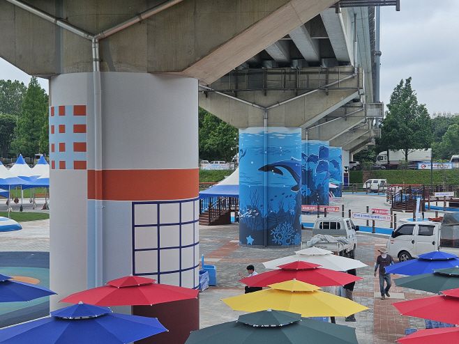 이에 구는 인천을 상징하는 색을 활용한 '몬드리안' 무늬와 '바닷속'을 주제로 한 교각 벽화를 조성해 야외 물놀이장과 조화로운 도시경관을 조성했다.