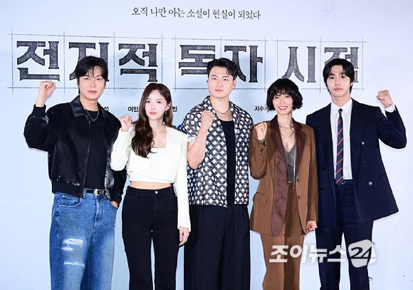 (왼쪽부터)배우 이민호-채수빈-신승호-나나-안효섭이 15일 오후 서울 삼성동 메가박스 코엑스에서 열린 영화 '전지적 독자 시점'(감독 김병우) 언론시사회에 참석하고 있다. [사진=정소희 기자]