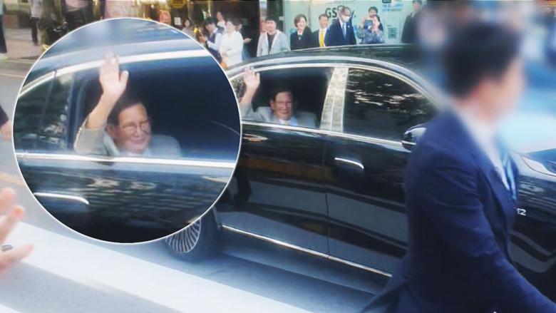 그러는 사이에도 노란 한복 입은 여성들은 이씨가 탄 차량을 향해 손 흔들고 환호합니다.